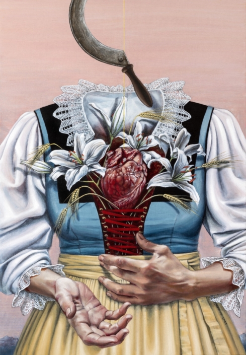 Zeller Lisa (Gauder Fest Sujet 2023), 2020, 100 x 100 cm, Öl Acryl Interferenz auf Leinen
